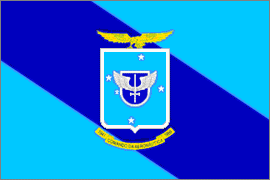 The Brazilian Air Force (Força Aérea Brasileira) was established on 20 January 1941 by combining the Army and Navy's air components into an independent air service, co-equal with the other two branches of the armed forces. Brazil declared war on Germany and Italy on 22 August 1942 and thereafter the FAB played a significant role in the Allied war effort, flying numerous antisubmarine patrols over the Atlantic. An FAB Catalina depth-charged and sank the German submarine U-199 on 31 July 1942. When the decision was made to contribute troops for service in Italy, the Brazilian Expeditionary Force (Força Expedicionária Brasiliera or FEB) included the FAB's 1st Fighter Group (1º Grupo de Aviação de Caça or 1º GAVCA). Flying P-47D Thunderbolts in the ground attack and interdiction roles, the 1º GAVCA compiled an outstanding record of service, earning a commendation from its higher headquarters, the USAAF's XXII Tactical Air Command. In the postwar period the FAB moved into the jet age, acquiring Meteor F8 fighters from Britain. These were supplemented and ultimately replaced by US F-80 Shooting Stars. In the 1970s the FAB was flying French Mirage III and US F-5E Tiger fighters. The Mirage IIIs were retired in 2005-06, being partially replaced by twelve ex-French Air Force Mirage 2000 fighters. The F-5E however, is still in service, having been continuously updated. Current plans call for the Mirage 2000s and some of the F-5Es to be replaced by the Swedish J39 Gripen multirole fighter, 36 of which have been ordered. Also in FAB service is the AMX A1-A ground attack fighter, which was the product of a joint Brazilian-Italian development program. Aside from these combat aircraft the FAB operates a wide range of airborne early warning, patrol, transport and miscellaneous aircraft. It is currently the largest air force in South America. The flag of the FAB displays the service's emblem. Shown below is the version without fringe. A version with white fringe and cravate is the FAB's ceremonial color. The FAB also has a range of rank and appointment flags, similar to those of the Army. The flag of the Commander-in-Chief of the Air Force displays the complete badge of the service in the fly half and the five stars of the Southern Cross in the fly half. That of the Chief of Staff displays the winged sword badge within a frame of the national colors. Officers of air rank (equivalent to general officers) have flags with from two to five stripes in the fly half and the winged sword with from five to two stars in the hoist half. The number of stripes and stars correspond to the officer's rank. Colonels, lieutenant-colonels and majors have flags displaying the winged sword with two, one or no yellow stripes respectively. Captains have a triangular pennant displaying the winged sword. For officers of any rank in the technical services, the winged sword is replaced by the relevant badge, as shown below for a colonel of the Medical Service and a lieutennt-colonel of the Supply Service. |