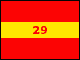 The artillery of US infantry divisions (DIVARTY) consisted of a headquarters and headquarters battery and four FA battalions, three with truck-towed 105mm howitzers and one with-tractor-towed 155mm howitzers.On D-Day one 105mm FA battalion was detached from the 29th Infantry Division DIVARTY to the 116th Infantry Regiment Combat Team.The DIVARTY distinguishing flag was scarlet with a horizontal yellow stripe on which the number of the division was centered. Distinguishing flags were made of wool bunting; dimensions were 3 feet at the hoist by 4 feet on the fly. The distinguishing flag was always carried or displayed with a National Standard, Service of the same material and dimensions with an additional 2 1/2-inch fringe of knotted yellow silk. The DIVARTY headquarters battery guidon was of the same design as the distinguishing flag; the battalions had scarlet guidons with the Field Artillery branch insignia, numerals and letters in yellow. All guidons were made of cotton or wool bunting; dimensions were 20 inches at the hoist by 27 inches on the fly with a 10-inch fork.